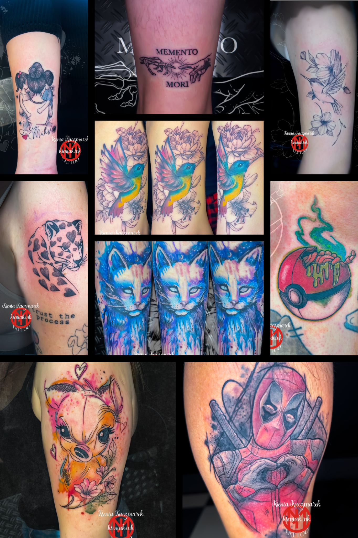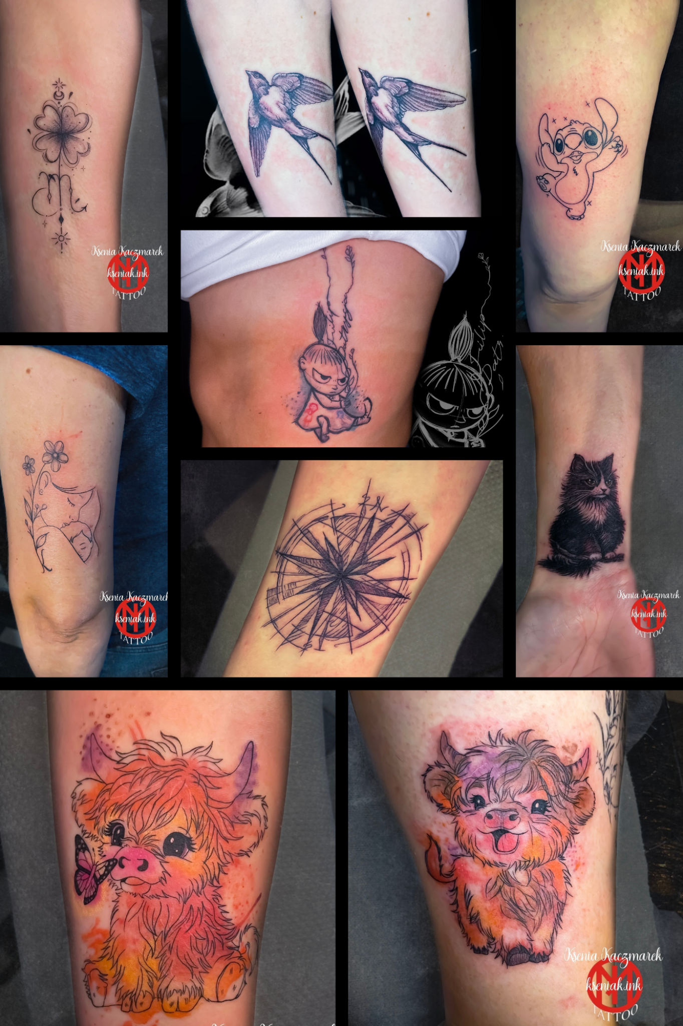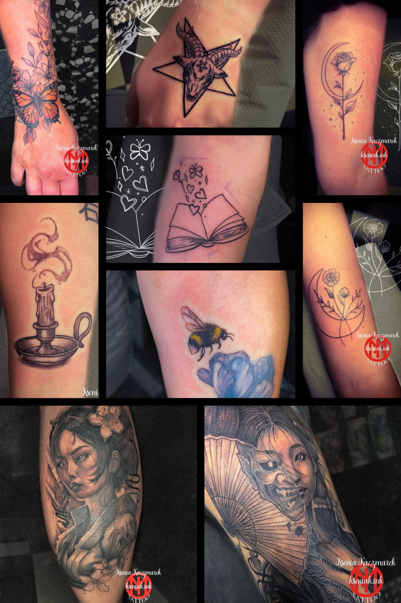Ksenia to połączenie wrażliwości artystycznej i swobody stylistycznej. Przez lata pracy w różnych technikach wypracowała wyczucie formy i kompozycji, które dziś przenosi na skórę. Każdy projekt traktuje indywidualnie, odnajdując się w różnych stylach i dopasowując je do charakteru klienta.